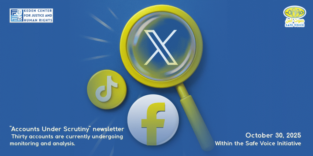 English version: https://kedencentre.org/2025/10/30/safe-voice-accounts-under-the-microscope-october-en/ كلمة فريق البرنامج يصدر هذا العدد من نشرتنا الدورية «صوت آمن – حسابات تحت المجهر» في ظل استمرار تصاعد الخطاب العدائي في الفضاء الرقمي السوداني، وما يرافقه من محاولات متزايدة لتطبيع الكراهية وتحويلها إلى جزء من التفاعل اليومي على المنصات الاجتماعية. من خلال هذا الجهد التوثيقي والتحليلي، يسعى فريق برنامج صوت […]