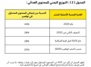 - نسبة المحتوى المُعاد تداوله من فترات سابقة.