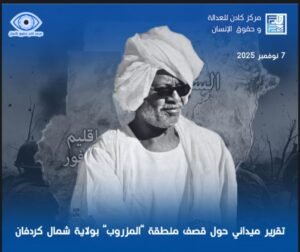 EN: https://kedencentre.org/2025/11/22/field-report-on-the-bombing-of-al-mazroub-area-in-north-kordofan-state/ الملخص في صباح السابع عشر من أكتوبر عام 2025، تحولت قرية صغيرة في غرب ولاية شمال كردفان إلى مسرح مأساوي لجريمة حرب محتملة،