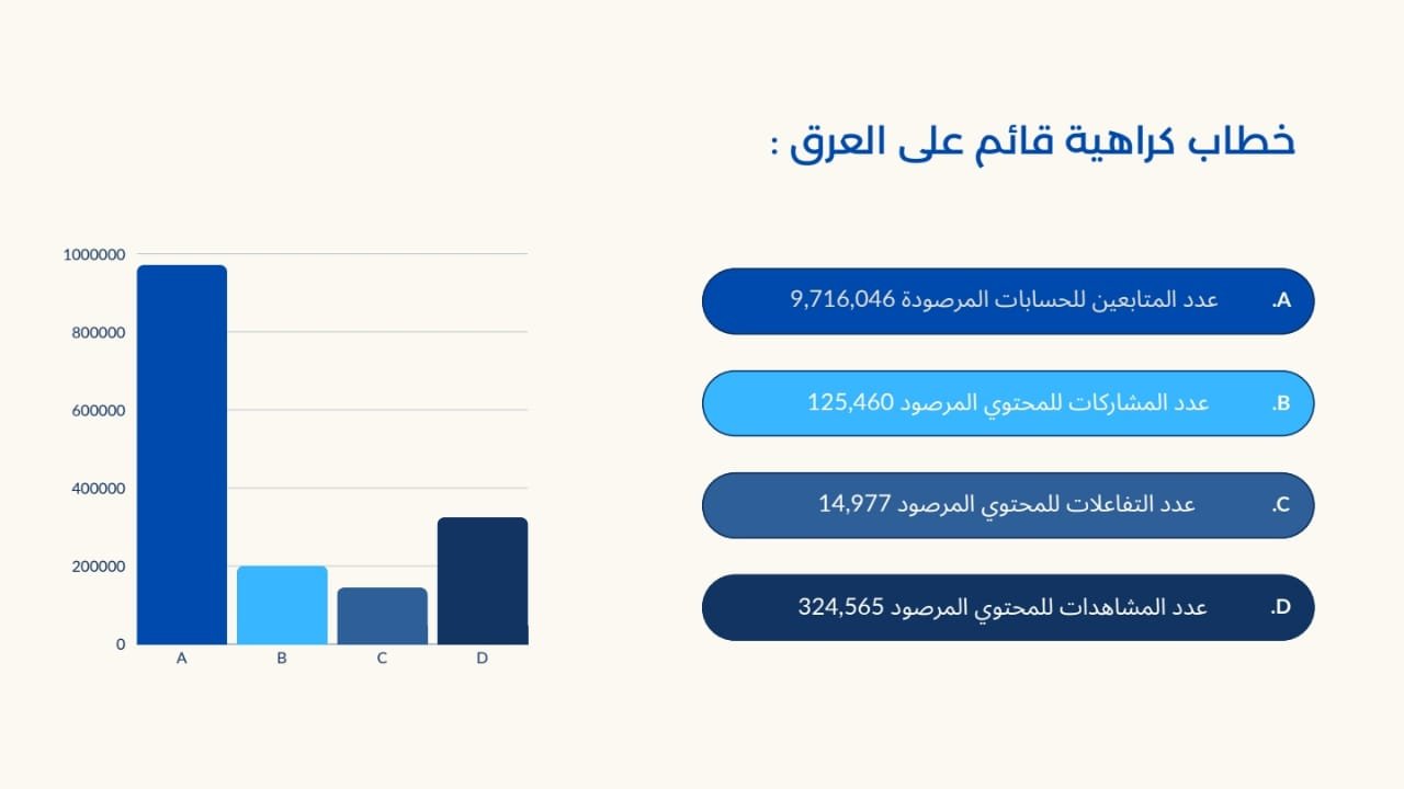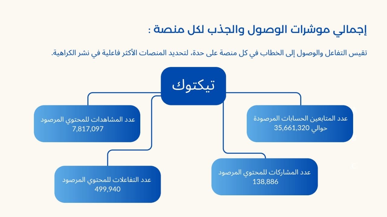 – منصات الانتشار: تيك توك أصبح الساحة الأبرز لنشر خطاب الكراهية، مستحوذًا على 97% من المشاهدات والتفاعلات، بينما تراجع تأثير فيسبوك وإكس.
