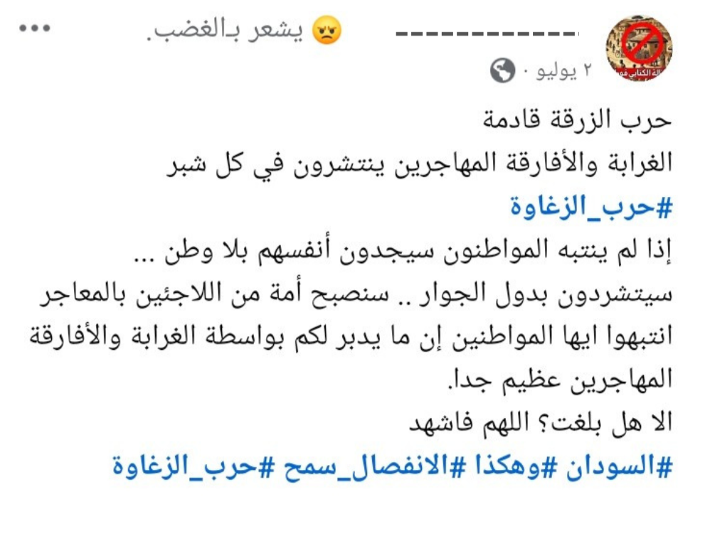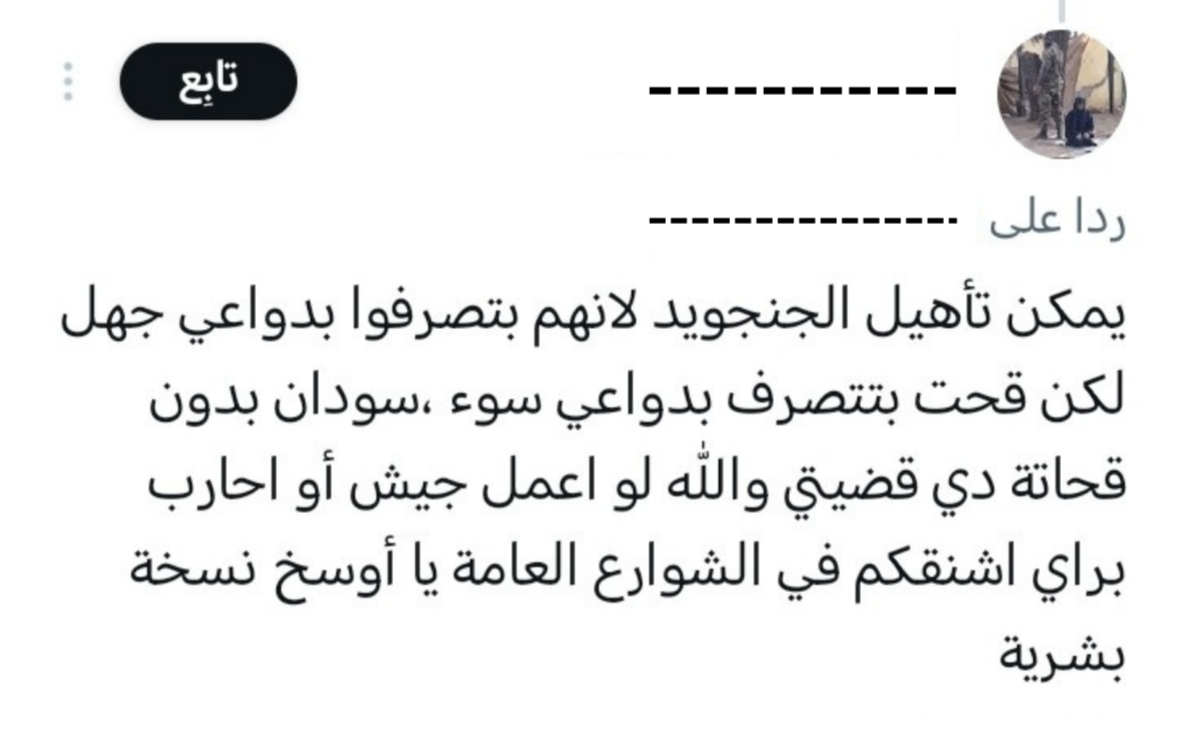وصف مناطق أو جماعات بأنها “سرطان” أو “نبت سرطاني” يشرعن فكرة استئصالها من المجتمع، مما يهدد وحدة السودان وسلامه الأهلي.