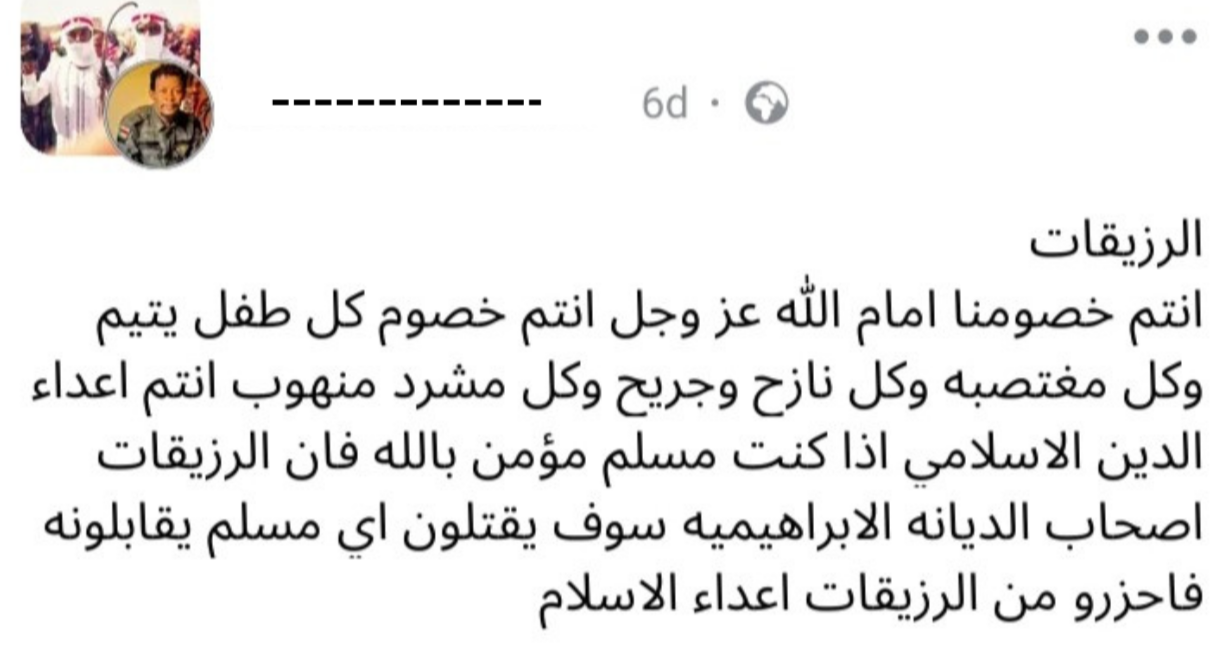 خطاب خطير (تحريضي على العنف والإبادة).