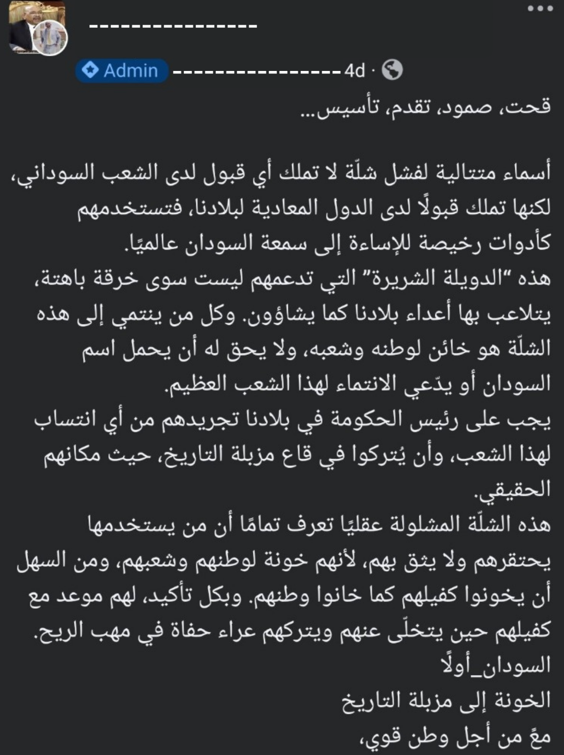 الخطاب التحريضي على أساس مناطقي (مثلًا ضد أبناء نهر النيل أو دارفور) يهدد شرعية المؤسسات الوطنية ويقوض محاولات بناء دولة جامعة.