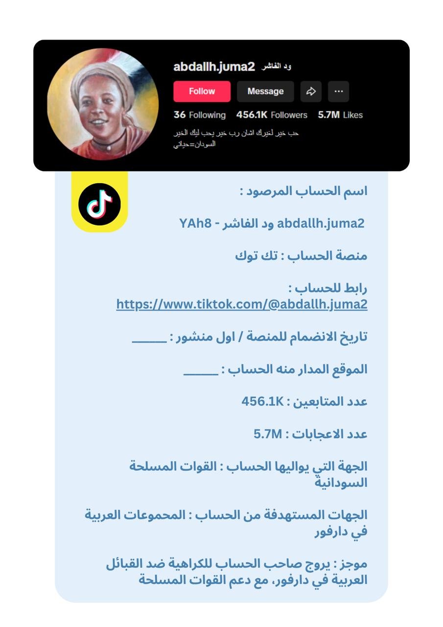 يهدف هذا الإصدار إلى تسليط الضوء على ثلاثين حسابًا نشِطًا على منصات التواصل الاجتماعي (تيك توك، فيسبوك، إكس/تويتر) تم رصد نشرها لأنماط مختلفة من خطاب الكراهية، بما في ذلك الخطاب القائم على العرق، الخطاب القائم على الرأي السياسي، والخطاب التحريضي والخطير. ويعتمد هذا العمل على منهجية توثيق دقيقة تشمل جمع البيانات العامة، تحليل المحتوى، وتصنيف الأنماط اللغوية والخطابية لتقديم صورة شاملة تساعد على فهم الظاهرة وتطوير استجابات فعّالة لها.
